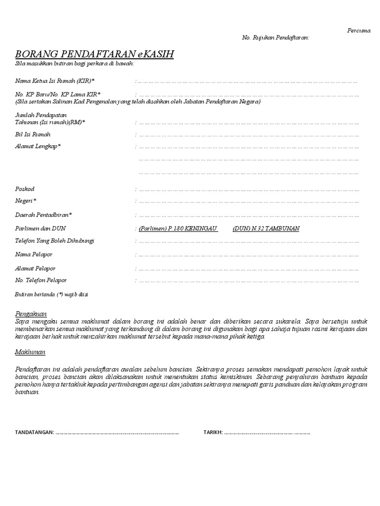 Kalabakan Ku Borang Baru E Kasih Sila Ambil Di Majlis Facebook